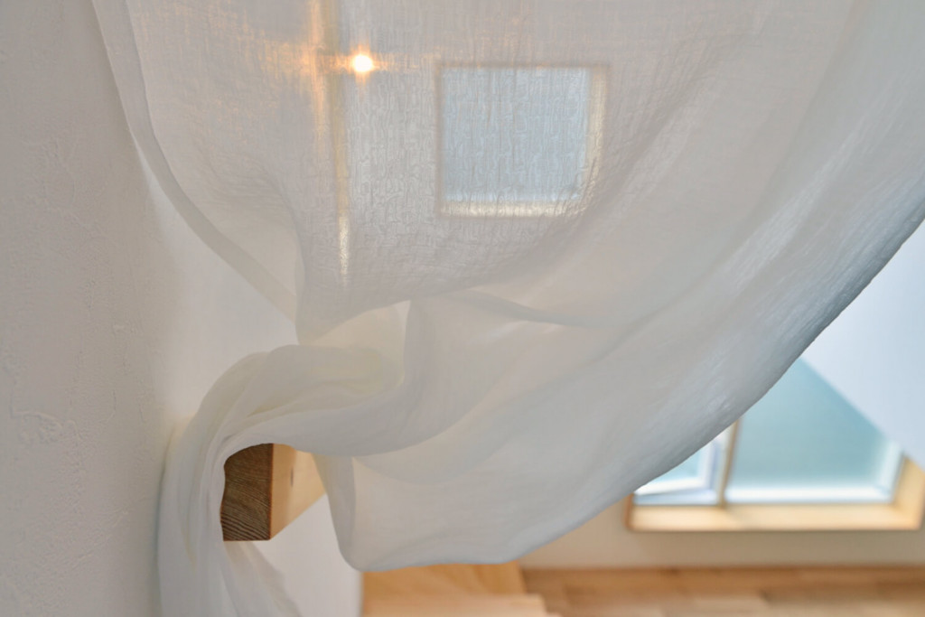 LDK上部の一部分は、2階から3階、さらにロフトへとつながる吹き抜けになっていて、吹き抜けに設けた窓からは、壁に沿ってやさしい光が射し込み、室内全体をいつでも自然光が包み込んでくれます。