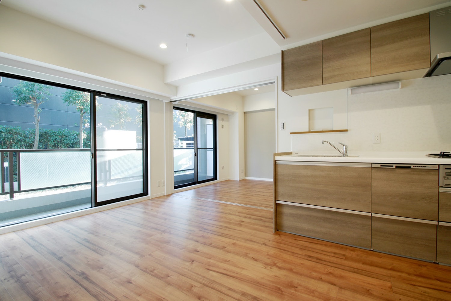 普段はDKのオープンな間取りを満喫しながら過ごし、引戸を閉めれば9.3帖と5.7帖とに分かれた2LDKとしても使用できるため、生活シーンによってカスタマイズできる自由さを堪能できるでしょう。