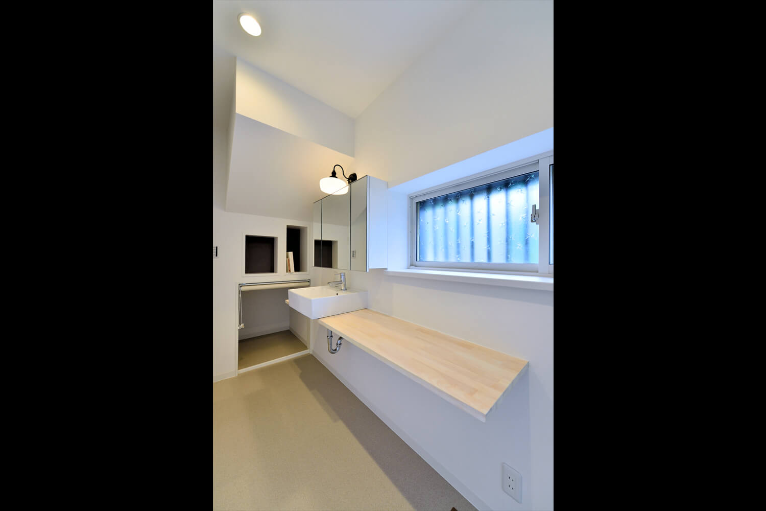 お施主様の「ほんのり和モダンテイスト」なイメージは、建物の形状や佇まいはそのまま活かすことであえて、和テイストを意匠的に盛り込むことなく、全体の印象がモダンになるように工夫しています。