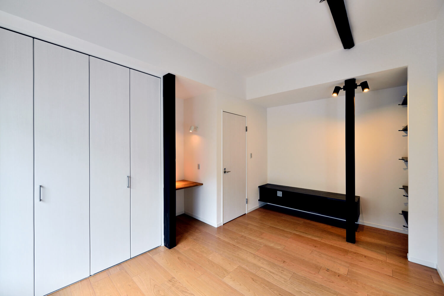 その柱を利用して可動のスポットライトを設置したり、読書スペースを演出したりと、新しい空間にうまく溶け込んでいます。