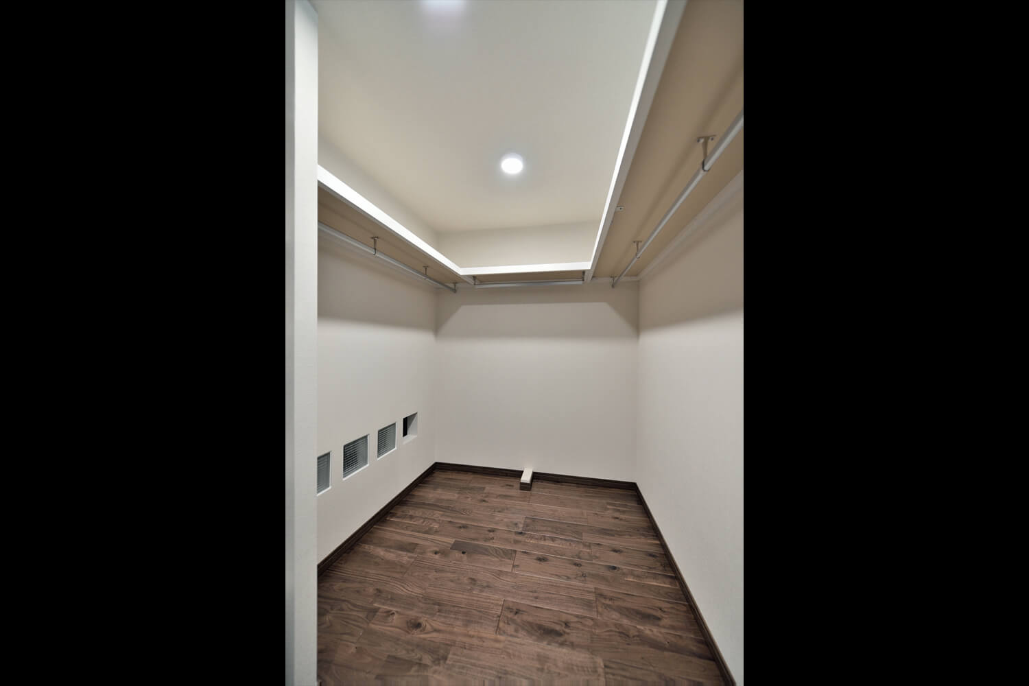 以前のお部屋では納戸のお部屋がありましたが、実際には仕事部屋として使いたいとのことでした。そのため、既存の納戸とリビングの壁位置を調整し、大容量のWICを設置、また畳の下も布団や季節ものが仕舞えるよう収納スペースに変えました。また、トイレ位置を変更し、掃除機など出し入れがし易い収納も別途設けました。ですので、用途にあわせて収納場所を選ぶことができます。