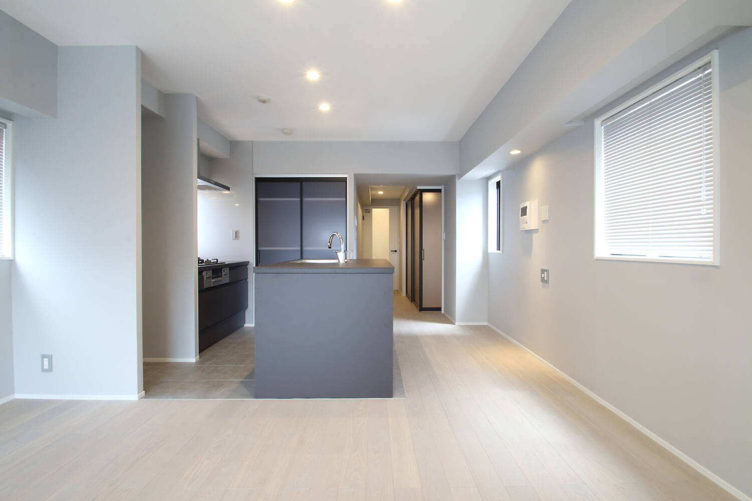 今も昔も変わらず人気色のグレー。その使い方は様々ですが今回は大きくその色を使い、東京暮らしにマッチするような落ち着きのある空間を演出しました。