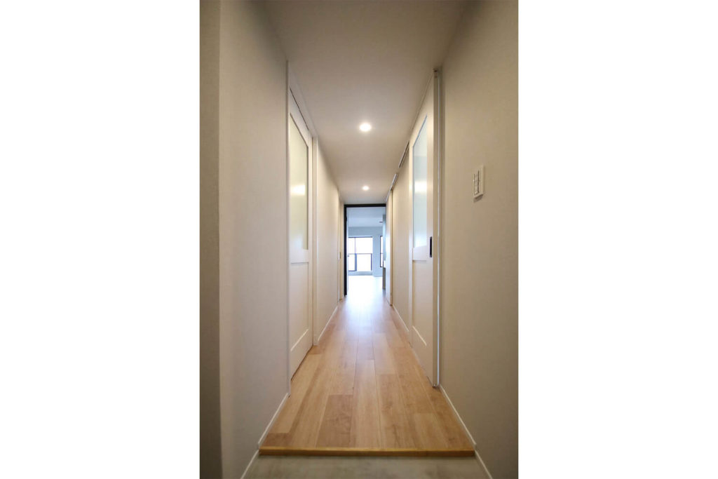 3LDKから2LDKに間取りを変更していますが、サニタリーや居室に設けられた造作棚、キッチン横のパントリーで収納力もバッチリ。