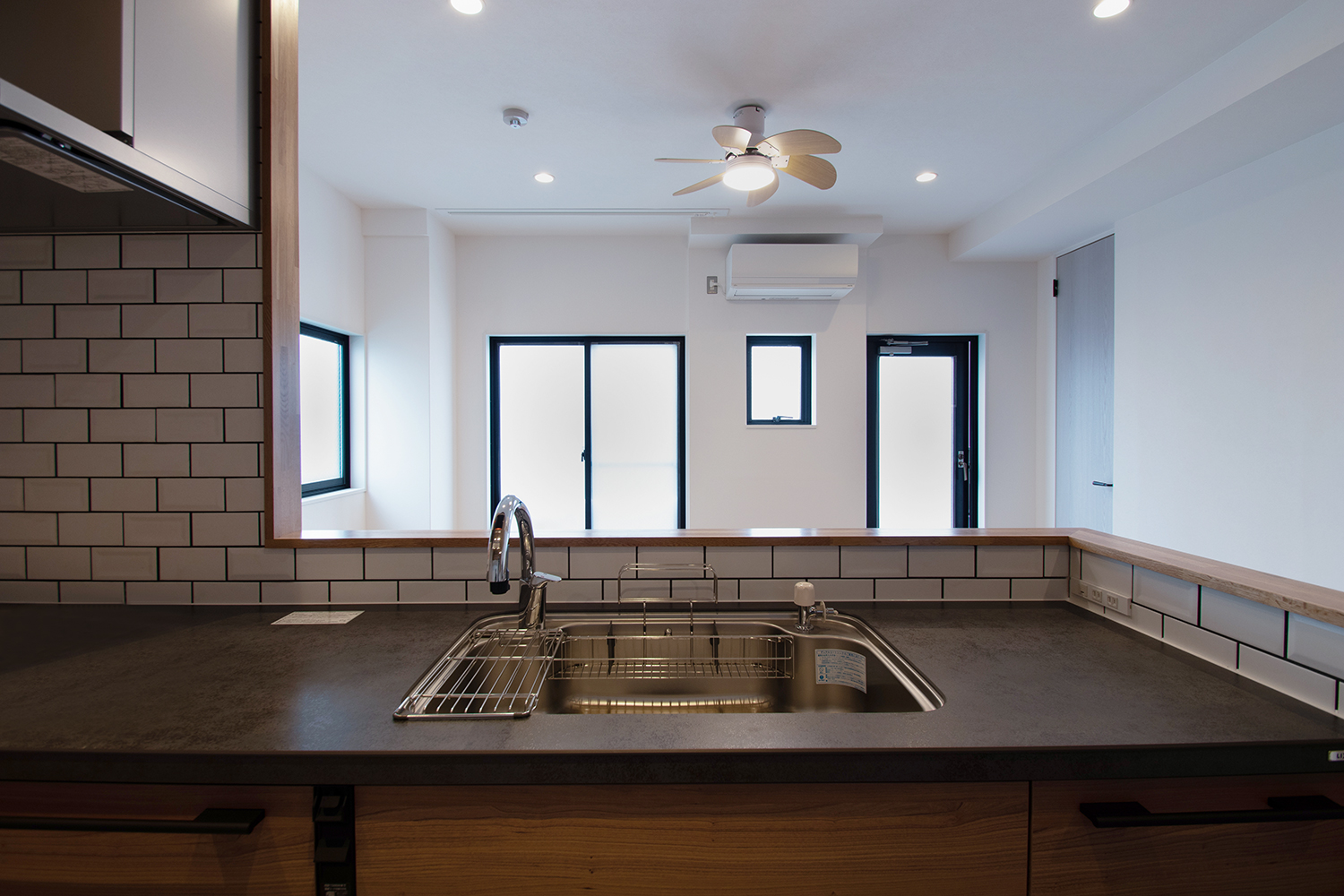 今回のリノベーションではリビングのオリジナルタイルや、居室フロア各部屋の収納などすべてをリノベーションで作りこむのではなく、施主様ご自身で作られている部分が多くあります。仕上げを施主様ご自身でされたことで、施主様にとってこの住まいの価値がきっと大きく増したのではないでしょうか。仕上げられたお部屋を拝見した際に「施主様らしさ」がとても感じられ、ご家族4人が笑顔で暮らしているイメージがすぐにわいてくる、とても素敵なリノベーションとなりました。