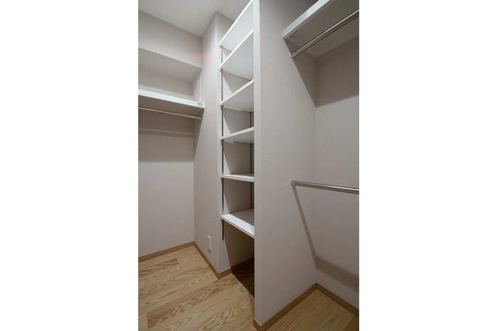 また、以前後付けで防音室を設置されていた事により、収納スペースの置き方が制限されてしまっていた為、なるべく空間を広く取れるよう新たに計画をしました。