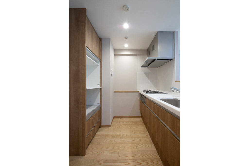 建具とキッチンのメーカーが同じため、面材をお揃いにする事ができます。