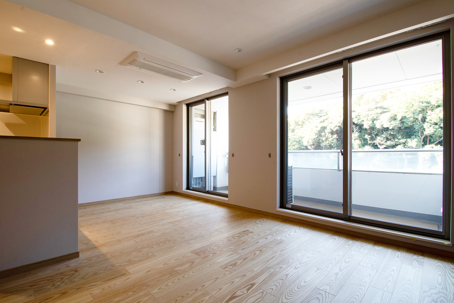 2LDKの間取りから、水廻りの位置は変えず、1LDK+WICと収納を一つにまとめられる間取りとなりました。