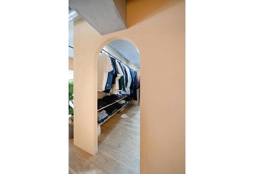 アーチ開口のWICやニッチ、ワークスペースなど、随所に設けた設えが、暮らしに自然と馴染む居場所をつくり出しています。