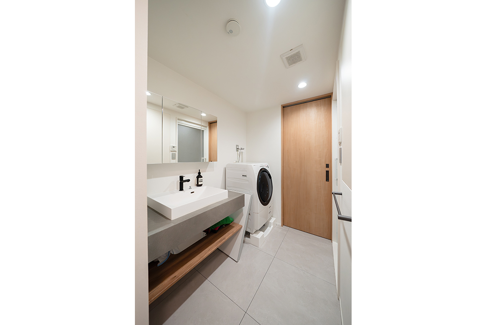シンプルな空間構成の中に、素材そのものの表情を引き立たせることで、日々の暮らしに心地よさと落ち着きをもたらす住まいへと生まれ変わりました。